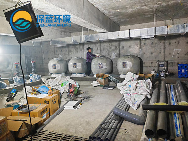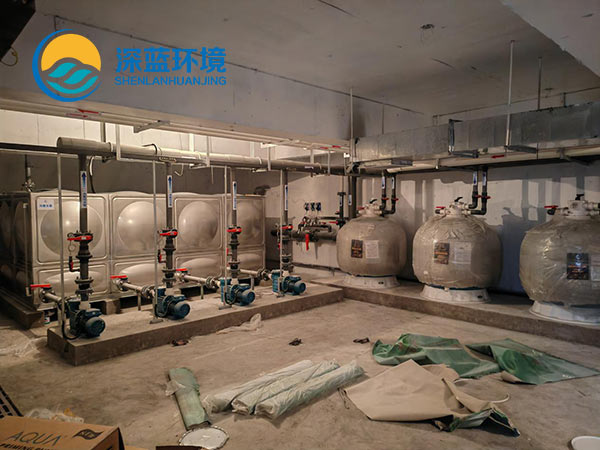 平度行知實(shí)驗(yàn)學(xué)校泳池設(shè)備機(jī)房安裝中 -青島深藍(lán)環(huán)境科技有限公司